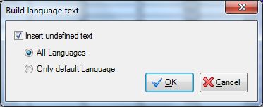 If the Insert undefined text option is activated, undefined texts are inserted from the language-dependent worksheets into the Text worksheet. (Project worksheet -> Text)
